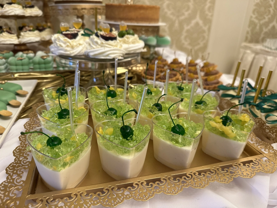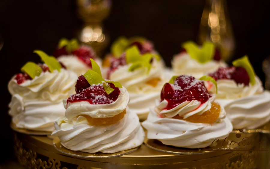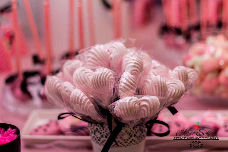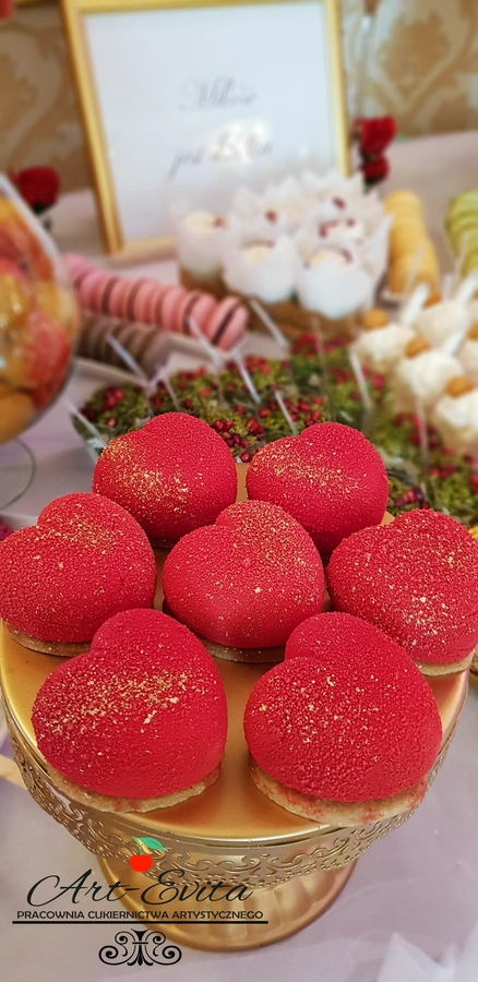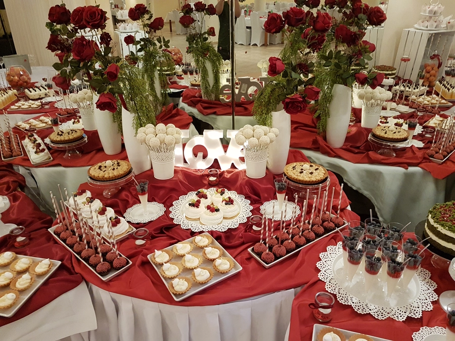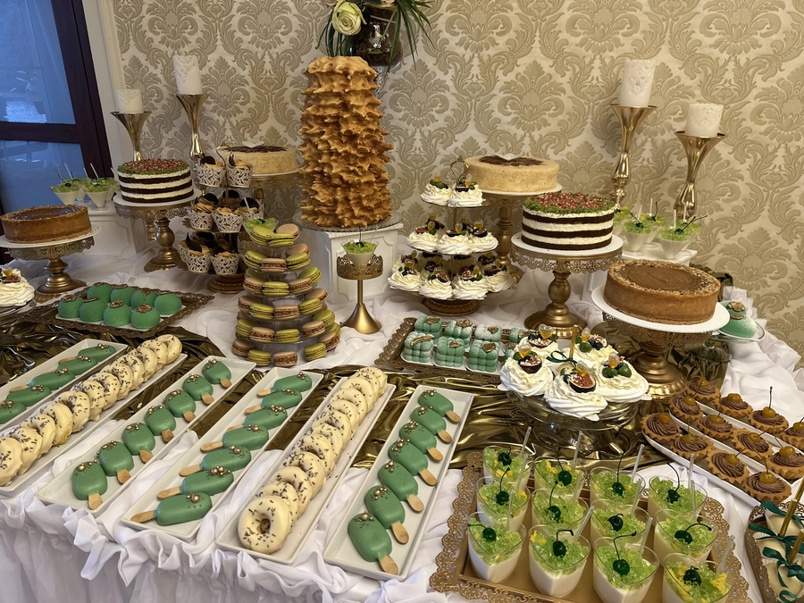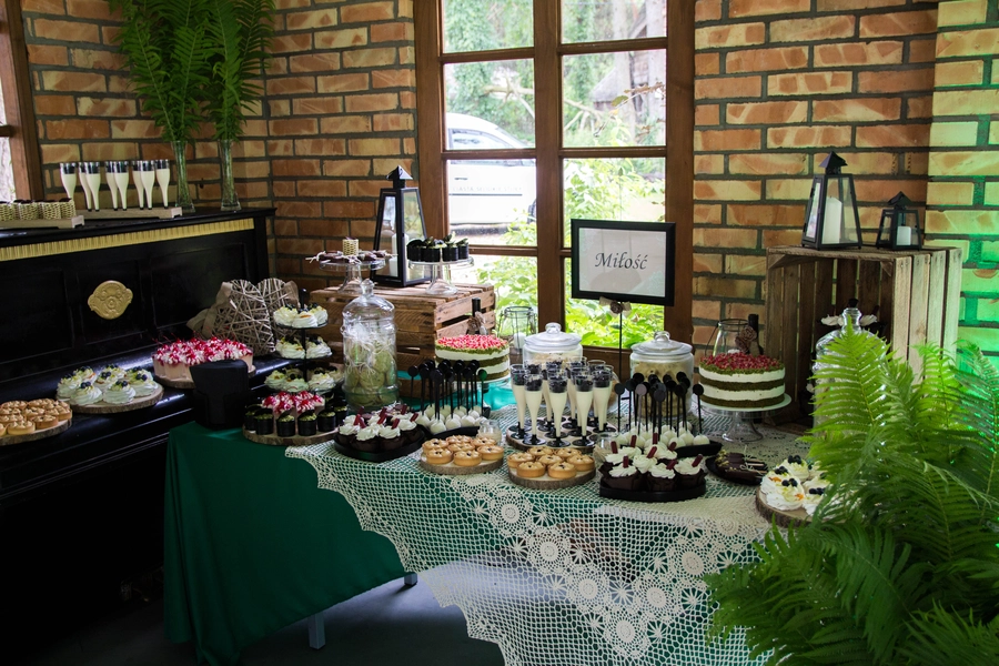 Są to przepięknie skomponowane nowoczesne słodkości w przeróżnych smakach, kolorach, w niewielkich porcjach i pojemnościach, tak aby gość weselny mógł spróbować chociaż kilku sztuk. A jest w czym wybierać! Są to mini deserki, mono porcje, mini pavlove, muffinki, cake popsy (lizaki z ciasta), pop sicles (lody z ciasta), nowoczesne oraz tradycyjne tartaletki, nowoczesne ptysie tzw. shu cakes, lizaczki bezowe, serniki o różnych smakach, tarty oraz wiele innych. Wszystko jest dowożone przeze mnie na salę, rozstawiane i dekorowane, tak aby pasowało do klimatu wesela stylem i kolorystyką.
