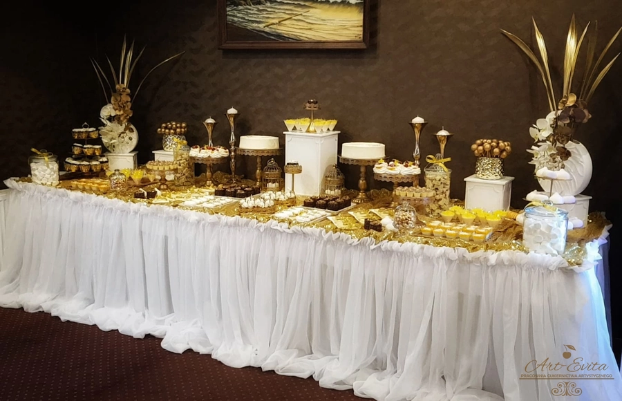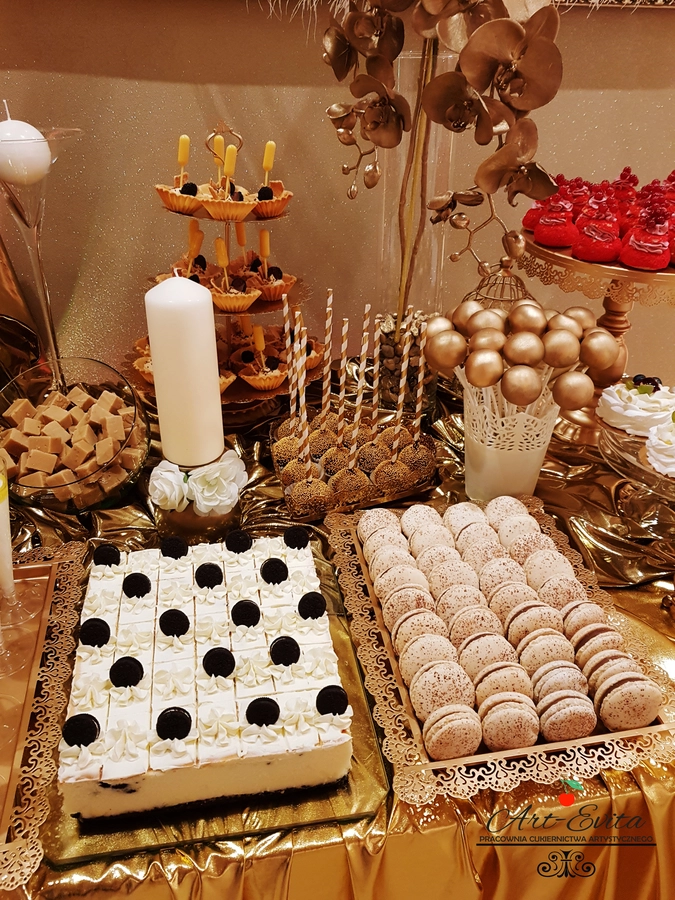 Cena zaczyna się od 50 zł/os. przy 3 szt/os. Na cenę składają się słodkości w określonym kolorze przewodnim oraz użyczone naczynia, tace, patery, świeczniki, wszelkie dekoracje, aranżacja stołu, oraz rozstawienie słodkości w lokalu.