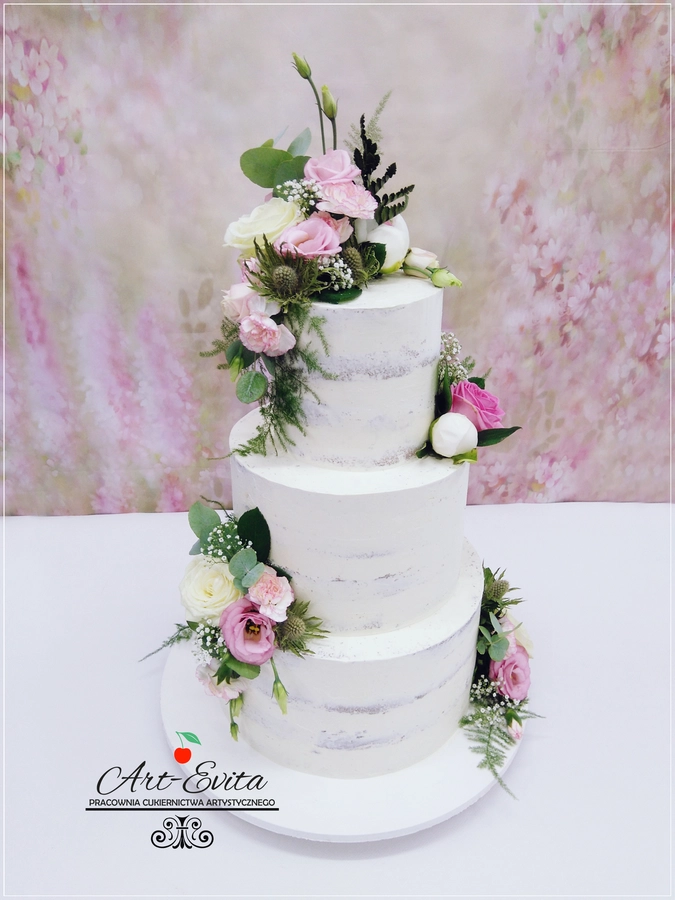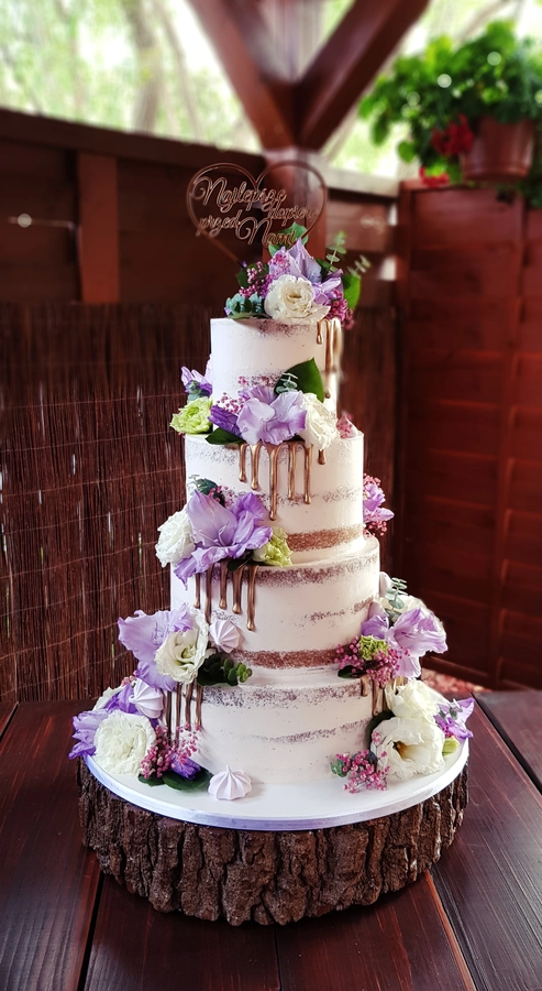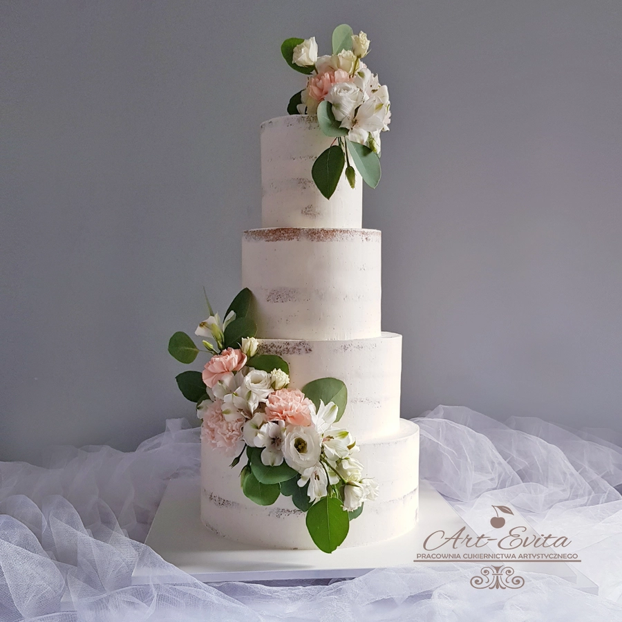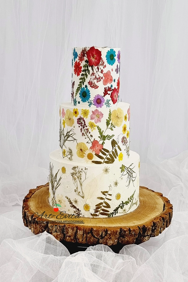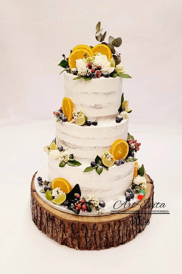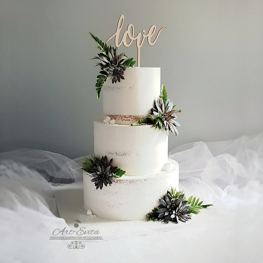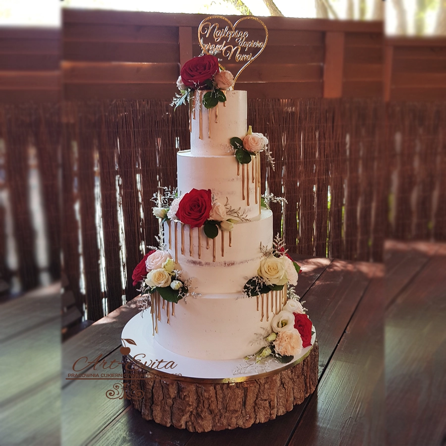 Rustykalne torty weselne wyróżniają się prostotą i elegancją. Zdobione są najczęściej żywymi kwiatami, suszonymi trawami, owocami, delikatnymi listkami czy pastelowymi akcentami, które podkreślają ich naturalny charakter. Każdy element dobieram tak, aby idealnie współgrał z motywem wesela.