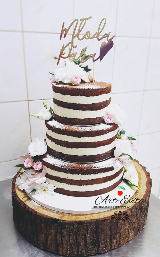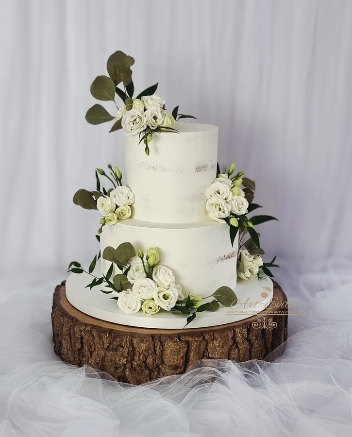 W rustykalnych wypiekach najczęściej stosuję kremowe tynki, semi-naked cake oraz naturalne, nieregularne struktury, które nadają tortowi lekkości. To doskonałe rozwiązanie dla Par Młodych, które cenią minimalizm i harmonijne, nienachalne dekoracje.