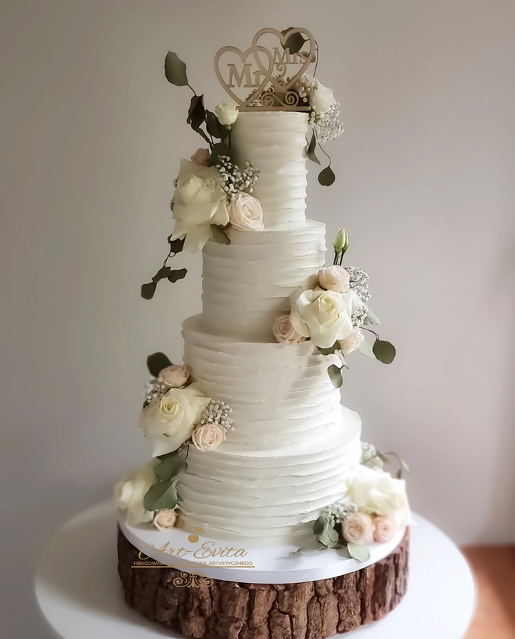 Torty weselne rustykalne to jedne z najbardziej klimatycznych projektów, jakie powstają w mojej pracowni. Tworzę je w oparciu o naturalne dekoracje, subtelne wykończenia i lekkie, kremowe tynki, które doskonale wpisują się w charakter przyjęć w stylu boho, vintage czy natur. W rustykalnych tortach królują żywe kwiaty, suszki, owoce oraz delikatne zdobienia podkreślające ich lekkość i naturalny urok.